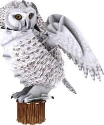 A hóbagoly 3D modellje részletesen kidolgozott tollakkal és élénk szemekkel tűnik ki a valósághű megjelenésével.