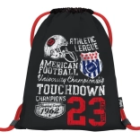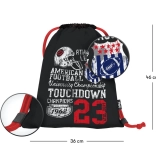 Stílusos zsák „Touchdown” futballdizájnnal, amely remekül ötvözi a praktikusságot és a tartósságot a mindennapos iskolai, edzési és szabadidős használathoz. Könnyű, kis helyen elfér, és az egyszerűen karbantartható anyag a megterhelőbb igénybevételt is bírja.