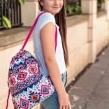 Praktikus és könnyű zsák, zsinóros hátsó hurkokkal – tökéletes iskolába, szakkörökre és szabadidőre. A strapabíró textilanyag könnyen karbantartható, elég letörölni, a feltűnő boho minta pedig egyedi stílust ad az öltözékének.