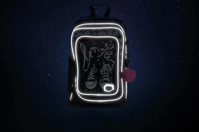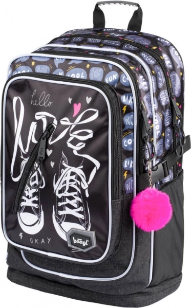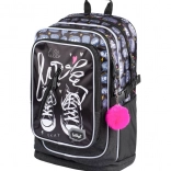 Stílusos BAAGL CUBIC iskolai hátizsák tornacipő mintával, ergonomikusan formázott hátkiképzéssel, 3 tágas rekesszel rendezővel és 15"-os laptopnak szánt zsebbel, alacsony, 1,2 kg-os tömeggel és fényvisszaverő elemekkel a biztonságért. Vízálló anyag, állítható pántok és praktikus zsebek teszik tökéletessé iskolába és szabadidőre egyaránt.