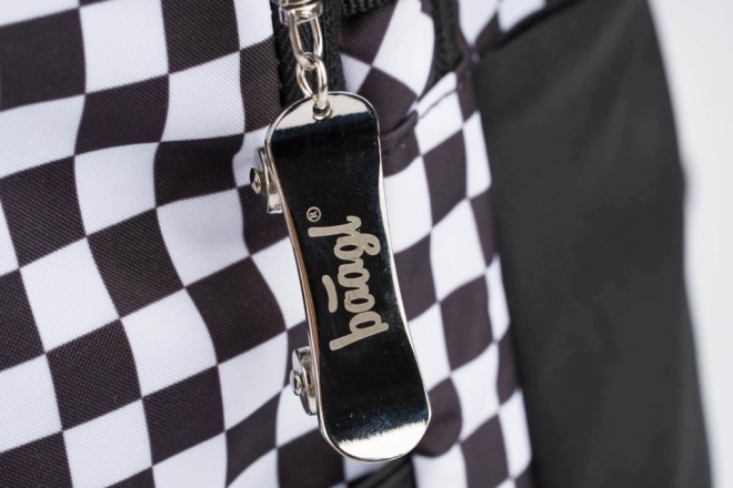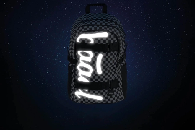 Fekete-fehér sakktáblaminta fényvisszaverő elemekkel a biztonságért és bónusz fém kulcstartóval.