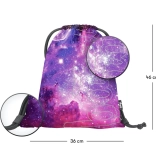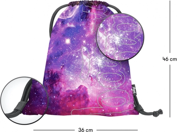 A BAAGL Skate Galaxy zsák ideális választás mindennapi használatra, köszönhetően egyedi kozmikus dizájnjának, lila és rózsaszín árnyalatokban, amely a galaxisra emlékeztet. A világító logó stíluselemet ad, amely az első pillantásra megragadja a figyelmet. Erős zsinórokkal van felszerelve a biztonságos zárás és a kényelmes háton való hordás érdekében.