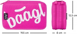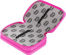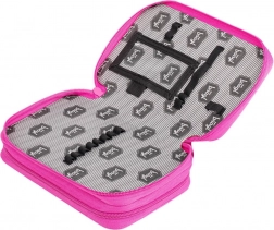Kétszintes iskolai tolltartó rózsaszín kivitelben logóval és megerősített háttal a könnyű kezelhetőség érdekében. Kiváló minőségű gumipántok lehetővé teszik a vastag háromszög alakú ceruzák tárolását is. Ezen felül felszerelt egy kis zsebbel érmék vagy apróságok számára.