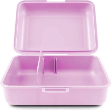 A doboz egy záras lezáróval van ellátva az egyszerű nyitás és zárás érdekében. Belül található egy osztott rekesz, amely lehetővé teszi az étel különféle részekre való felosztását, ami különösen praktikus a sulis uzsonnákhoz.