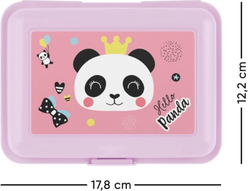A rózsaszín Panda uzsonnásdoboz napi használatra kiváló választás. Kiváló minőségű műanyagból készült, ami tartósságot és könnyű karbantartást biztosít. A fedelén található egy aranyos panda design koronával és Hello Panda felirattal, ami minden állatkedvelőnek örömet okoz.