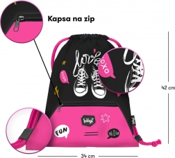Stílusos és praktikus iskolai készlet, amely tartalmazza a hátizsákot, a tolltartót és a modern cipőmintás tasakot. Tartós és vízálló anyagokból készült, a biztonságos és kényelmes használat érdekében.