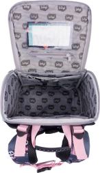 A felnyitható nyitórendszer közvetlenül a padból hozzáférhetővé teszi a tartalmat. Belül gumis szervezőt, átlátszó órarend-zsebet és elegendő helyet talál a tankönyveknek és az uzsonnának.