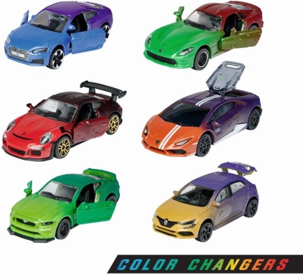 Ezek a részletgazdag kisautók egyedülálló Color Changers effektust kínálnak: kb. 10 °C-ra hűtve megváltoztatják a színüket, majd kb. 22 °C-on visszatérnek az eredeti árnyalathoz. Minden modell fém, műanyag kiegészítőkkel, szabadonfutó, nyitható részekkel és rugózott kerekekkel a simább haladásért.