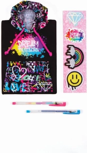 A graffiti stílusú kapucnis notesz tökéletes a 6 éves kortól lányok számára, akik ki szeretnék fejezni kreativitásukat. Ez a modern notesz ideális hely az élmények, titkos álmok vagy kalandtervek feljegyzésére. Két tollal, matricákkal és ragasztós foltokkal kerül forgalomba, amelyek lehetővé teszik minden egyes notesz személyre szabását.