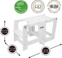 A Tantermi torony 3 az 1-ben fehér három különböző konfigurációt kínál: torony, asztal és szék. Kiváló minőségű és tartós rétegelt lemez anyagból készült, könnyen összeszerelhető, és maximális teherbírása akár 50 kg.
