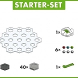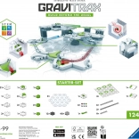 A Gravitrax kezdőkészlet több mint 100 darabot és 18 különböző építőelemet tartalmaz, amelyek lehetővé teszik, hogy versenypályát vagy kanyargós és akadályokkal teli utat hozzon létre egy vagy több golyó számára.