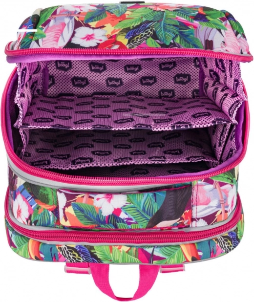 • Kétrekeszes rendszer az optimális teherelosztásért, az első rekesz praktikus rendezőt tartalmaz kis zsebbel apróságoknak vagy telefonnak és karabinerrel a kulcsokhoz.