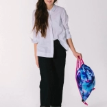 A modern minta kék, lila és rózsaszín árnyalatokban stílust kölcsönöz az öltözéknek, és minden alkalommal kiemel.