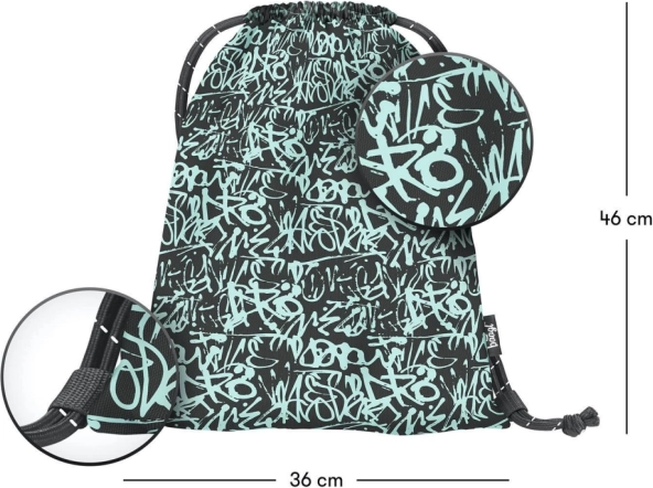 Stílusos BAAGL cipőzsák Graffito dizájnnal, remek választás váltócipőhöz, sportcipőhöz és egyéb apróságokhoz. Az ellenálló, könnyen tisztítható anyagnak köszönhetően bírja az iskolai és szabadidős igénybevételt, és biztonságban tartja a tartalmát.