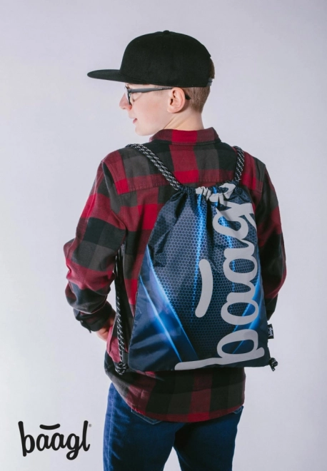Praktikus BAAGL zsinóros zsák mindennapi iskolai és sportolási használatra. Erős, mosható anyagból készült, sötétben világító logóval és strapabíró zsinórokkal a kényelmes háton hordáshoz.