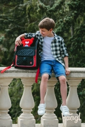 A felnyitható nyitórendszer közvetlen hozzáférést ad a táska tartalmához akár a padból. A belső rendszerező gumipánttal és az órarendes átlátszó zseb rendben tartja az iskolai kellékeket.