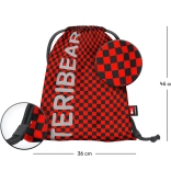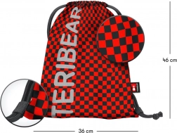 Praktikus tornazsák és cipőzsák TERIBEAR motívummal, amely sötétben világít. Erős, mosható anyagból készült, zsinóros zárással, amely kényelmes háton hordást tesz lehetővé hátizsákként.