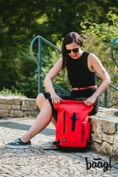A piros Teribear feltekerhető hátizsák modern roll‑top dizájnt ötvöz a kényelmes mindennapi használatot szolgáló funkciókkal. A tartós, vízálló anyag megvédi a tartalmat az esőtől, míg az ergonomikusan kialakított hátpanel és az állítható vállpántok maximális komfortot nyújtanak viselés közben.