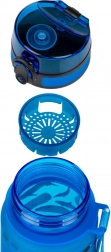 Ez az 500 ml-es tritánpalack elengedhetetlen kiegészítő az iskolába, kirándulásra vagy sportklubba. Zárható tető garantálja, hogy egy csepp sem szökik meg, és az integrált szűrő lehetővé teszi limonádé vagy tea készítését. Kényelmes fogantyú könnyű hordozhatóságot biztosít.