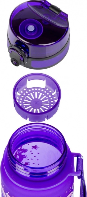 Élvezze a maximális kényelmet és biztonságot ezzel az ivópalackkal. Készült kiváló minőségű tritán anyagból, amely szagtalan és mentes a káros anyagoktól, mint pl. BPA, PVC vagy ftalátok, a palack forró italokhoz is alkalmas, a beépített szűrő révén gyümölcsös limonádéhoz vagy teához. A praktikus zárható fedél megakadályozza a folyadék szivárgását, míg a fogantyú könnyű szállítást biztosít. Mindez egy vonzó, színes egyszarvú minta designban, ami lenyűgözi minden iskolást.