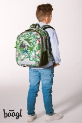 A Baagl Dinoszauruszok iskolai aktatáska robusztus és megerősített testtel rendelkezik, amely védelmet nyújt az iskolai kellékeknek, mint egy védő páncél. Kétrekeszes rendszer biztosítja az optimális súlyelosztást, ahol az első kamra praktikus szervezőt, zsebet az apróságoknak és kulcskarikát tartalmaz.