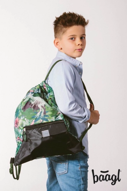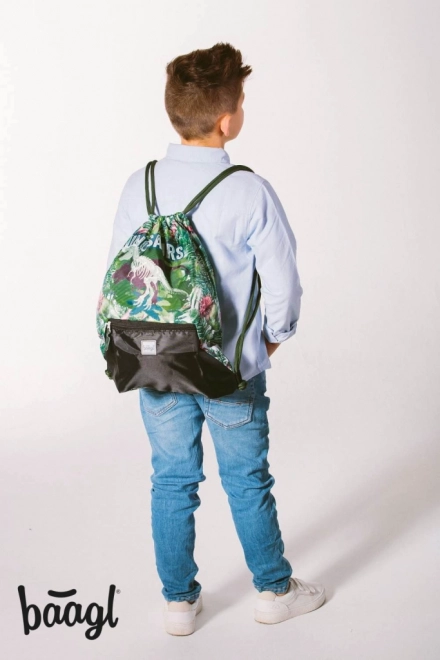 A BAAGL Dinoszauruszok cipős táska nemcsak feltűnő dizájnjával, hanem praktikus funkcióival is kitűnik. Készült tartós és mosható anyagból, amely hosszú élettartamot biztosít. Az alsó részén cipzáras zseb található, ami ideális apró tárgyak számára. A erős zsinórok könnyű viselést biztosítanak a háton.