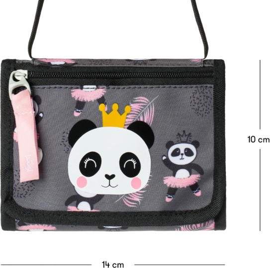 A bájos pandák és a finom rózsaszín részletek stílusos kiegészítővé teszik a pénztárcát, amelyet a gyerekek szívesen hordanak minden nap.