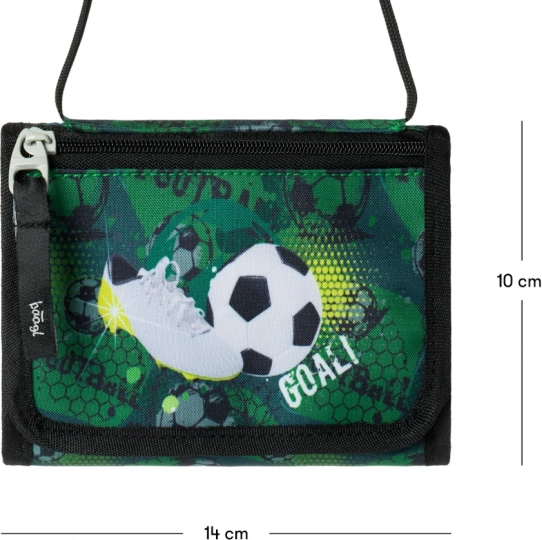 Ez a BAAGL nyakba akasztható pénztárca focis dizájnnal kiváló választás a zsebpénz, apró tárgyak és iratok biztonságos tárolására. A tartós anyagnak és a megbízható tépőzárnak köszönhetően a tartalom a helyén marad mindennapos használat során is.