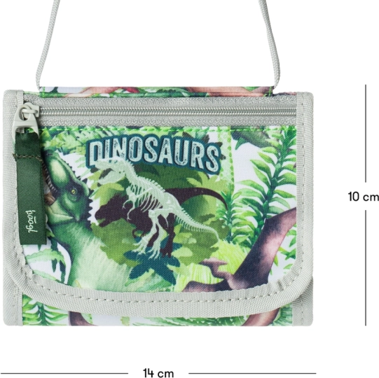 Stílusos, nyakba akasztható pénztárca feltűnő dinoszauruszos mintával – ideális gyerekeknek iskolába, szakkörökre és kirándulásokra. A masszív textilkivitel ellenáll a mindennapos igénybevételnek, miközben könnyű és kényelmes viselet.
