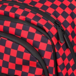 Stílusos BAAGL Skate TERIBEAR iskolai szett piros–fekete kockás dizájnnal: tágas hátizsák, praktikus tolltartó és strapabíró tornazsák. A hátizsák 3 rekeszt kínál rendszerezővel és 15"-os laptopzsebet, ergonomikusan formázott hátpanellel, teljesen állítható pántokkal és gördeszkapántokkal. A szettet könnyű kivitel, fényvisszaverő elemek és minőségi vízlepergető anyagok egészítik ki.