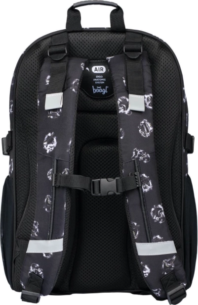 A hátizsák tartós, vízálló anyagból készült és fényvisszaverő elemeket tartalmaz a biztonság érdekében.