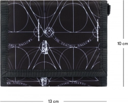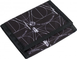 Stílusos Harry Potter stílusú pénztárca Halál ereklyéi motívummal, ideális a sorozat rajongóinak. Készült tartós textil anyagból praktikus tépőzáras zárással.