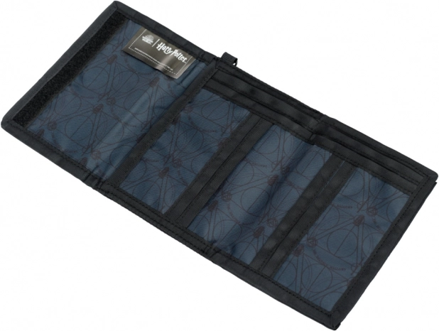 Ez a Harry Potter pénztárca Halál ereklyéi motívummal nemcsak stílusos, hanem nagyon praktikus is. Tartós textilanyagból készült, amely hosszú élettartamot biztosít. A pénztárca tépőzáras zárással rendelkezik, ami megkönnyíti a tartalom gyors elérését, miközben biztonságos tárolást nyújt értékeinek.