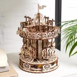Az ornamentikus lézergravírozás, a természetes fa és a klasszikus körhinta motívum figyelemfelkeltő díszévé teszi a vitrineknek vagy a gyerekszobának.
