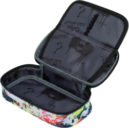 Ez a Batman Képregény mintás iskolai tolltartó eredeti képregény mintával rendelkezik, amely minden szuperhős rajongó figyelmét felkelti. Kihajtható belső elválasztóval van felszerelve, amely megkönnyíti a rendszerezést. Ezenkívül belső cipzáras zseb és külön rekesz a heti órarend számára, ami növeli a praktikus használhatóságot. A tolltartó textíliából készült, ami könnyedséget és tartósságot biztosít.