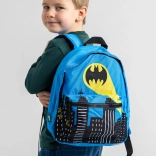 A hátizsák Batman ikonikus logójával és városi sziluettekkel van díszítve, amelyek lekötik minden rajongó figyelmét.