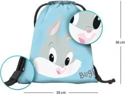 Bugs Bunny előóvodai zsák a játékos dizájnt ötvözi a praktikus használattal. Az erős zsinórok segítségével való összehúzás egyszerű zárást és hátit viselést tesz lehetővé. A mosható anyag hosszú ideig tökéletes állapotban tartja.