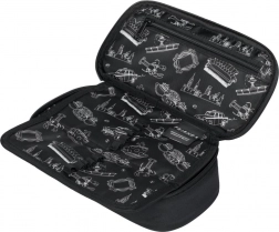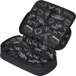 Erős tolltartó kihajtható belső rekesszel és cipzárral, a biztonságos iskolai felszerelés tárolására.