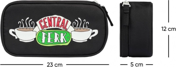 Ez a fekete színű iskolai tolltartó nemcsak praktikus, de stílusos kiegészítő is minden Friends rajongónak. A Central Perk logóval minden iskolai napon kísérni fog. Kiváló minőségű textil anyagból készült, a tolltartó elegendő helyet kínál az összes iskolai eszköz számára.