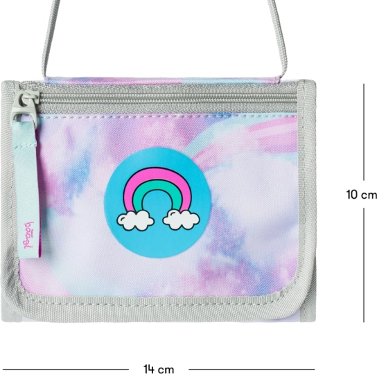 A Baagl márka praktikus nyakba akasztható tárcája 'Égbolt' mintával ideális választás mindenki számára, aki értékeli a funkcionalitás és a stílus kombinációját. Strapabíró anyag, praktikus zsinór és cipzáras zseb teszik őt remek útitárssá.