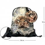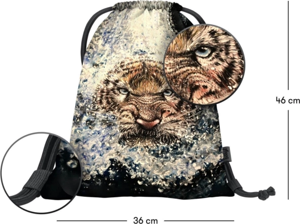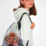 Stílusos hátizsákzsák tigris mintával az eARTh by Lukero kollekcióból, ideális cipőnek és apróságoknak szabadidős tevékenységekhez. Erős, mosható anyaggal és masszív zsinóros összehúzással rendelkezik, amely egyben kényelmes hátihordást is biztosít.
