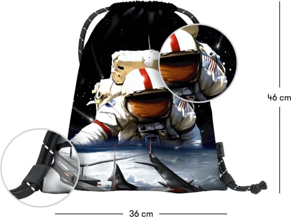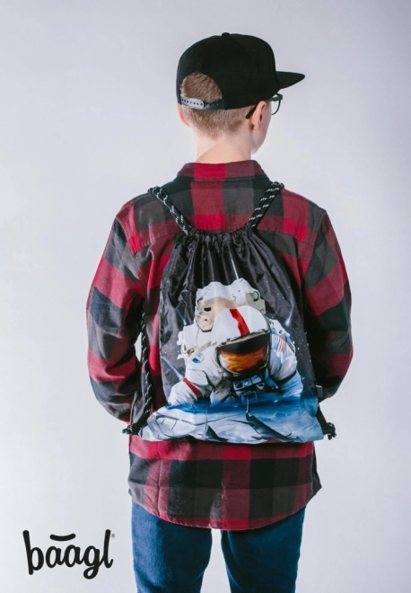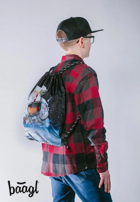 Stílusos Baagl eARTh tornazsák Caer8th űrhajós motívummal, ideális cipőnek és apróságoknak szabadidőhöz. Kínál erős, lemosható anyagot, megbízható összehúzást és kényelmes hátihordást a masszív zsinóroknak köszönhetően.