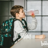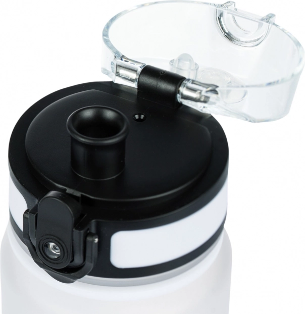 Biztonsági retesz és felpattintható szájrész a kényelmes, egykezes iváshoz kiömlés nélkül – ideális iskolába, autóba és edzésre.