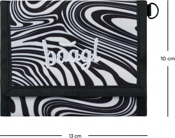 Ez a BAAGL pénztárca egyedülálló stílus és funkcionalitás kombinációját kínálja. Tartós és ellenálló anyagának köszönhetően ideális iskolába és mindennapi használatra. Fekete-fehér absztrakt mintával díszítve és finom hímzett szöveggel az elején.