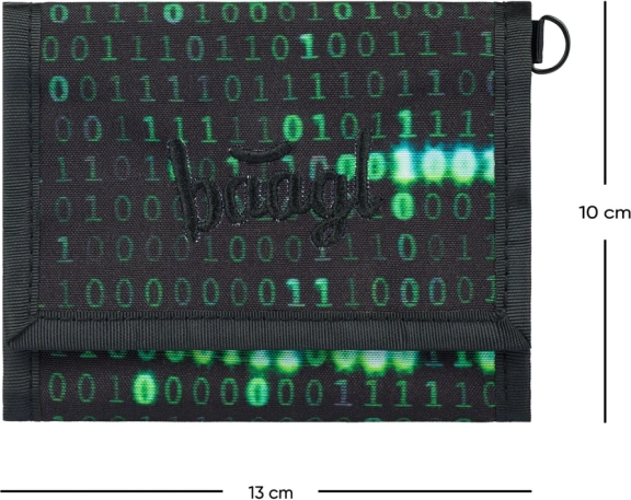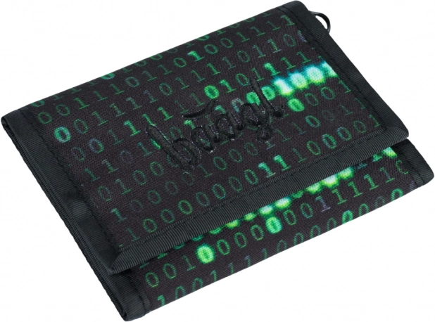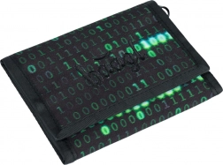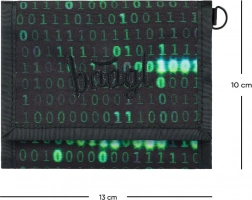 A pénztárca fekete-zöld bináris dizájnnal büszkélkedhet, amely minden digitális kultúra rajongónak tetszik.