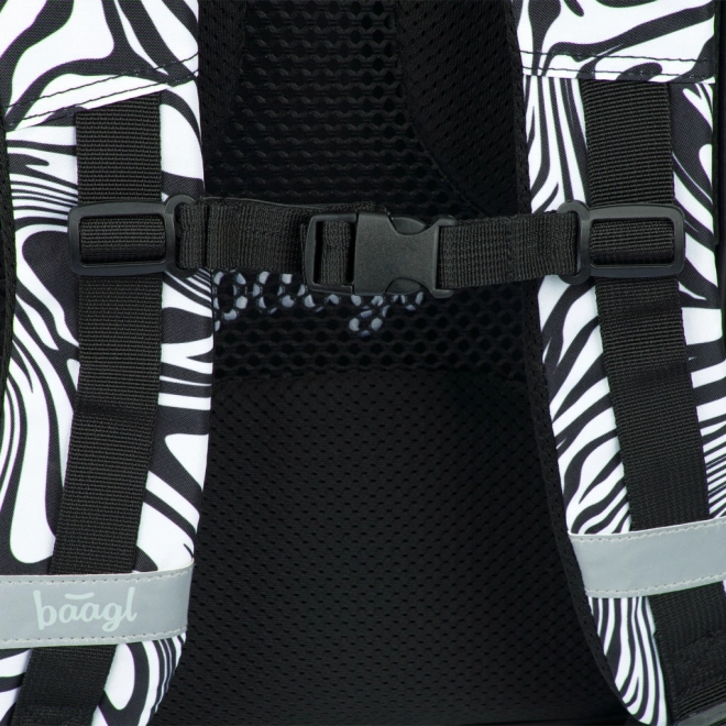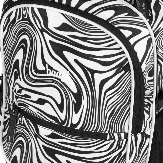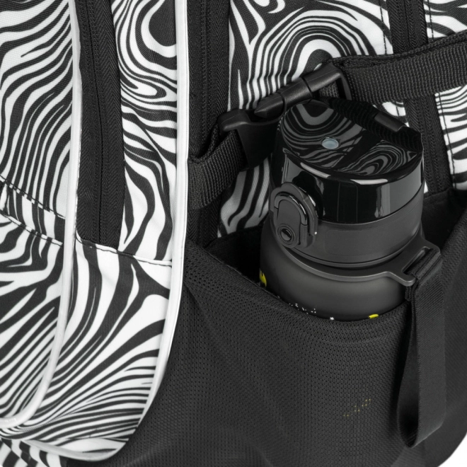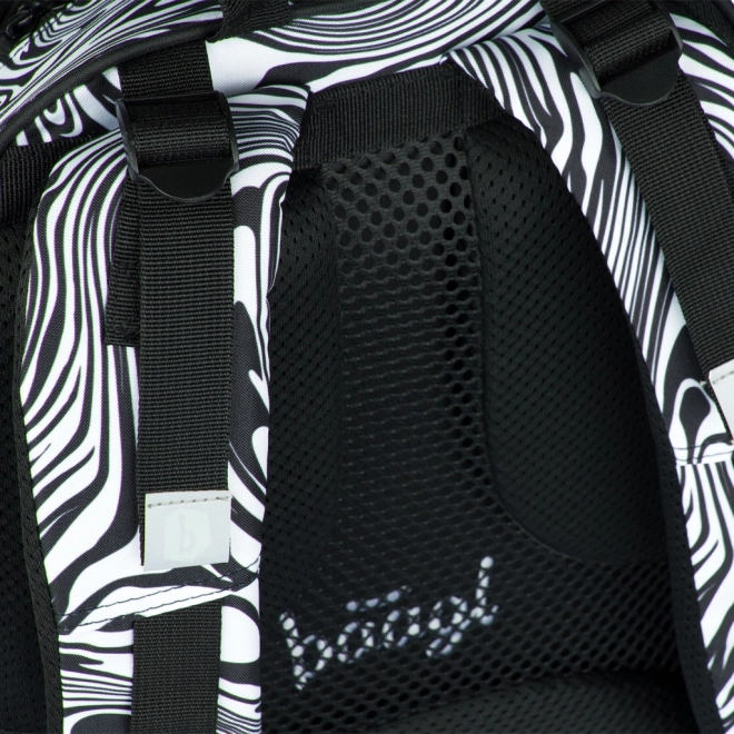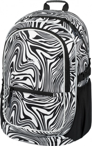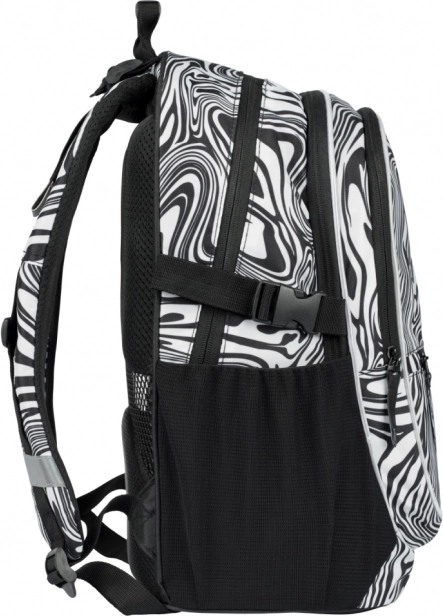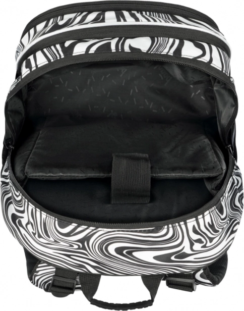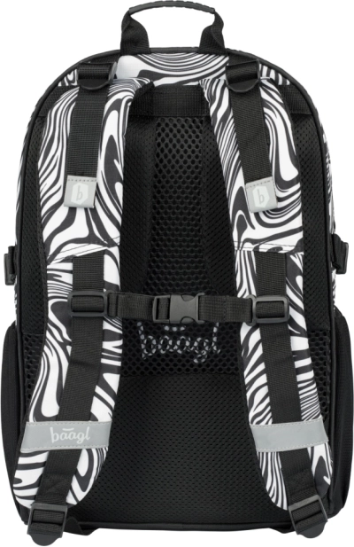 A stílusos BAAGL Core Mixture iskolatáska fekete-fehér mintával ergonomikus hátkialakítást, alacsony, 900 g-os tömeget, valamint három rekeszt kínál rendezővel és 15"-os laptop számára kialakított zsebbel. A teljesen állítható pántoknak, a oldalsó kulacstartó zsebeknek, a vízálló anyagnak és a fényvisszaverő elemeknek köszönhetően ideális a mindennapos iskolai használatra.