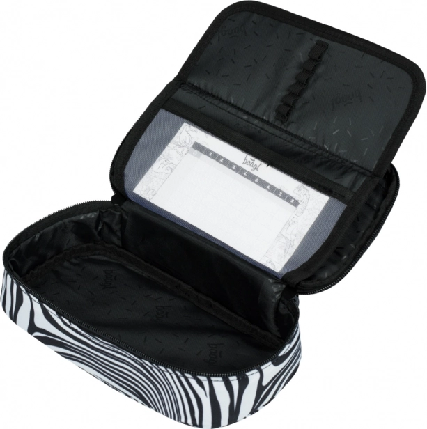 Praktikus és tartós tolltartót keresel iskolába vagy irodába? A BAAGL Mixture a zebramintás, modern designt átgondolt térszervezéssel ötvözi. A kihajtható elválasztónak és rugalmas pántoknak köszönhetően az írószerek mindig áttekinthetően rendezve lesznek.
