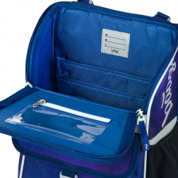 Az új felnyitható nyitás gyors hozzáférést ad a felszereléshez közvetlenül a padból. Belül átlátszó órarendzseb és átgondolt rendszerező található gumipánttal a füzetek és tankönyvek rögzítéséhez. Az erős hálós oldalzsebek elférnek egy kulacsot, míg a szigetelt, tágas első zseb csattal védi az uzsonnát.