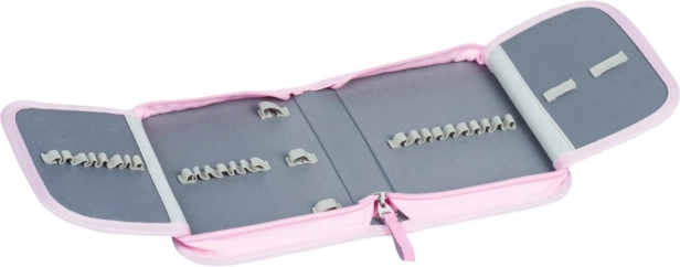 Fedezze fel az áttekinthető és tartós tolltartót finom safari dizájnnal, rózsaszín-kék kivitelben. A két fülnek és az átgondolt belső elrendezésnek köszönhetően minden írószert a helyén tart, miközben kompakt és könnyű marad a mindennapi iskolatáskához.