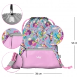 Az alsó részen egy cipzáras zsebecske található apróságoknak, kulcsnak vagy zsebkendőnek. Az erős zsinórok gyors zárást és biztonságos hordozást biztosítanak, míg a mosható anyag a megterhelő nap után is megkönnyíti a tisztítást.